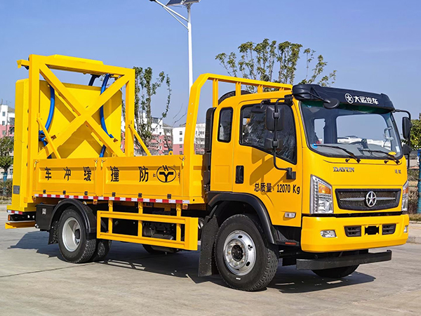 上装配置:箱体采用国标优质板材制作,后部防撞缓冲模块包采用国际知名技术产品畅行达 100K防撞缓冲模块,带有**检测报告,矩阵式LED爆闪灯,能形成向左和向右的箭头指向,充当施工作业车辆后方的缓冲卫士。如若发生追尾事故,能够在肇事车辆和前方施工作业区域之间构建一个缓冲区域,通过机具结构变形吸收撞击的能量,**限度地降低被保护人员及设备遭到碰撞的几率。**电动液压**系统,性能稳定,安全可靠,可实现平稳举升和降落。