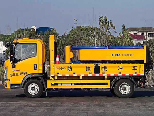 上装配置:货箱采用国标优质板材制作,箱体后部防撞缓冲模块包采用国际知名技术产品100K防撞缓冲模块,防撞缓冲吸能模块主要由车载防撞缓冲垫和导向标志架组成,充当施工作业车辆后方的缓冲卫士。如若发生追尾事故,能够在肇事车辆和前方施工作业区域之间构建一个缓冲区域,通过机具结构变形吸收撞击的能量,**限度地降低被保护人员及设备遭到碰撞的几率。高性能液压系统,可实现快速举升和落下操作,方便设备运输转场,一键启动功能,举升和落下防撞装置。